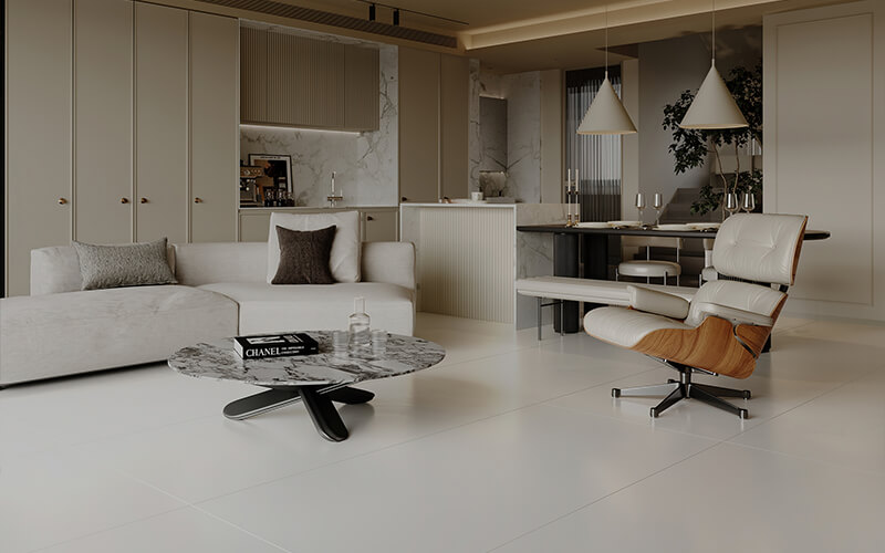 Azulejos de cerámica Tiene una superficie brillante y una excelente textura de espejo. Refleja la luz eficazmente, creando un espacio más abierto, luminoso, transparente y vibrante. Es especialmente adecuado para interiores con poca luz o áreas pequeñas. Es ideal para zonas de uso frecuente con mucho tráfico, como salas de estar, centros comerciales, hoteles, etc.